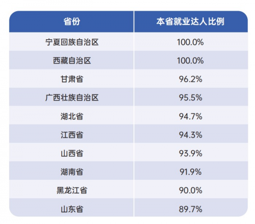 据报告统计,约80.1%的探店达人选择在本省就业,其中宁夏、西藏、甘肃、广西、湖北、江西、山西、湖南、黑龙江九个省份的省内就业比例较高,均不低于90%。